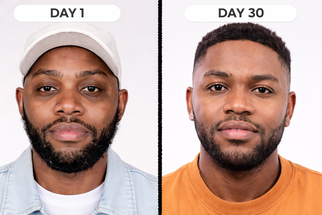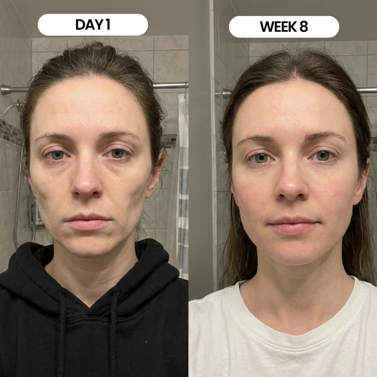 Week 1: My under-eye bags were puffy every morning and my concealer creased like crazy.Week 3: The puffiness is noticeably smaller and my under-eyes look smoother in photos. I actually look rested now. Week 1: My under-eye bags were puffy every morning and my concealer creased like crazy.Week 3: The puffiness is noticeably... Week 1: My under-eye bags were puffy every morning and my concealer creased like crazy.Week 3: The puffiness is noticeably smaller and my under-eyes look smoother in photos. I actually look rested now.